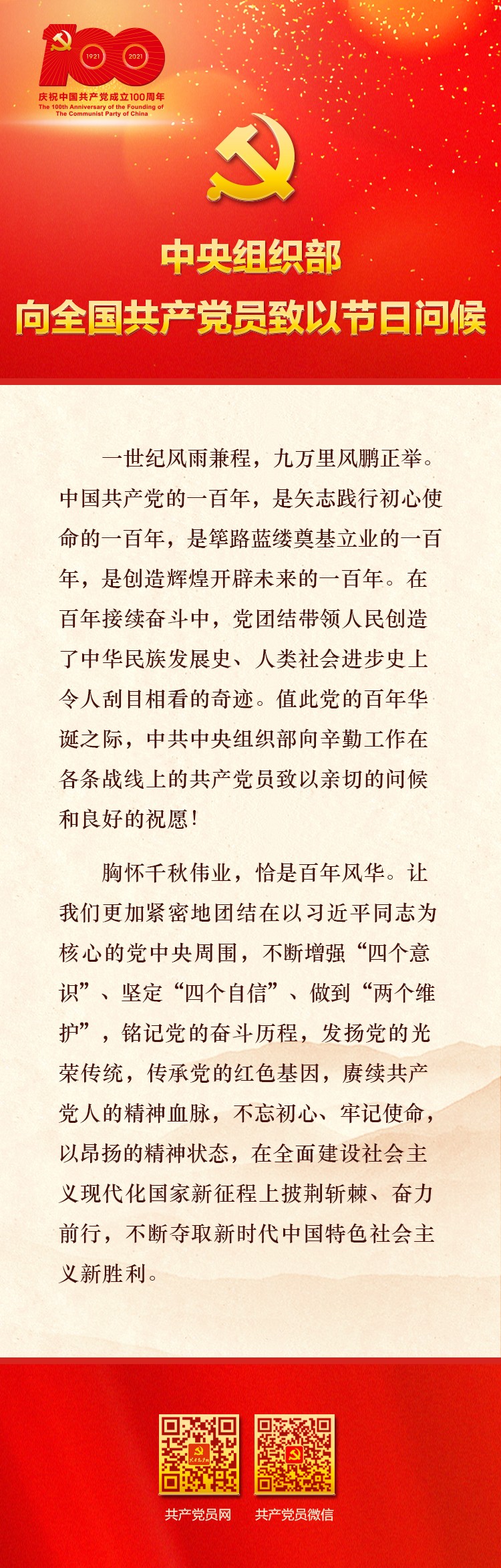 中央组织部向全国共产党员致以节日问候